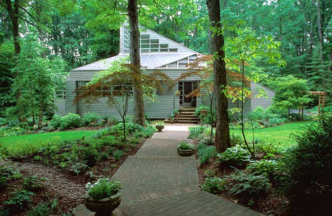 Large sweeping drifts of perennials punctuated with native trees and shrubs transition between the large open lawn and the woods beyond. Arbors and a pergola were designed to complement the house’s unique style, and to give “entrance” into the different garden “rooms” near the house.